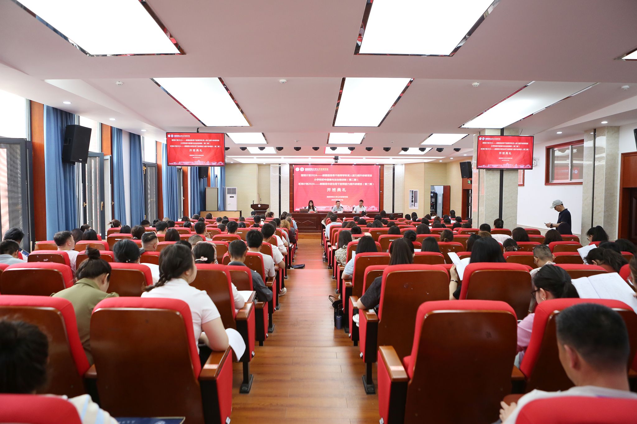 “国培计划2024”—新疆县级骨干教师学科育人能力提升研修小学和初中道德与法治培训班及“区培计划2024”—新疆高中政治骨干教师能力提升研修班(第二期)全体成员参加了开班典礼。