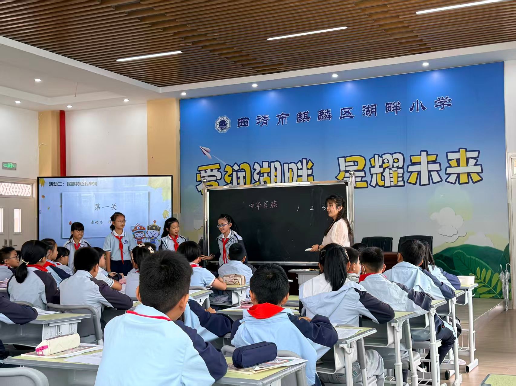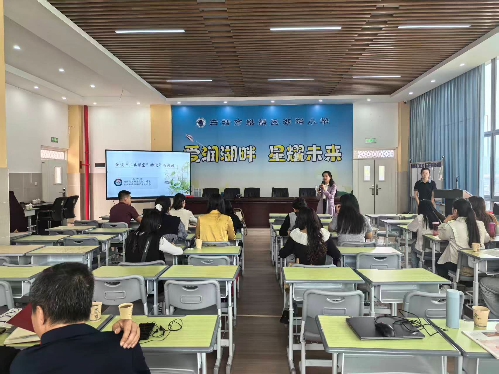 在安宁市连然小学、安宁市太平公司、昆明市经济技术开发区实验小学、曲靖市麒麟区湖畔小学及曲靖市教育体育局等单位,沈妍琼进行了题为《中华民族一家亲》的教学示范课,王新菲、马明和肖华根分别以《例谈“三真课堂”的设计与实施》《新课标·新教学·新评价——道德与法治课程标准解读》《绕不开的成长策源地--课堂》为题在相关公司开展了精彩的讲座,并对参训学员的展示课与教研活动进行了诊断、点评、交流和指导。