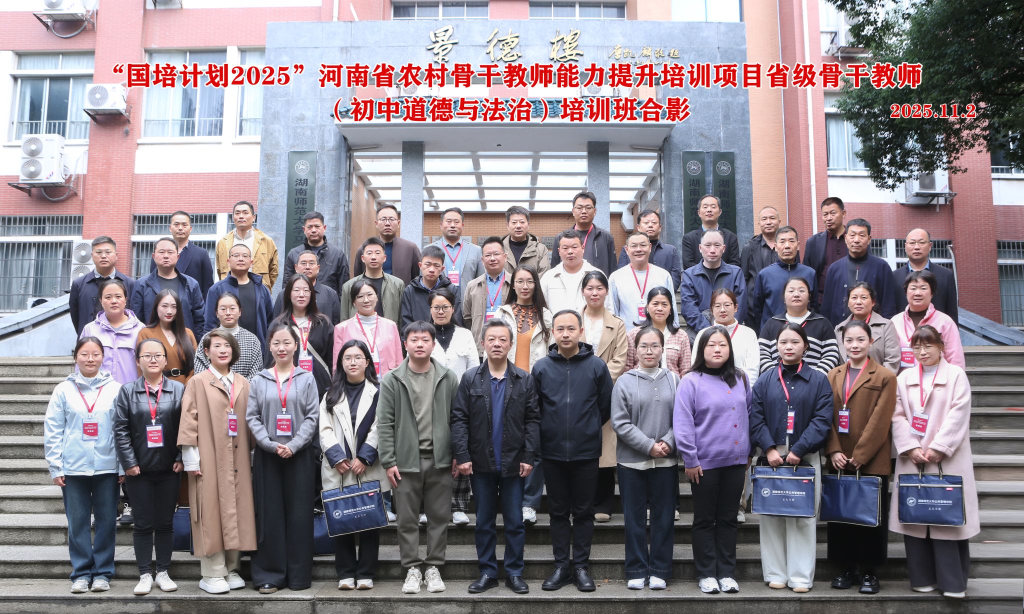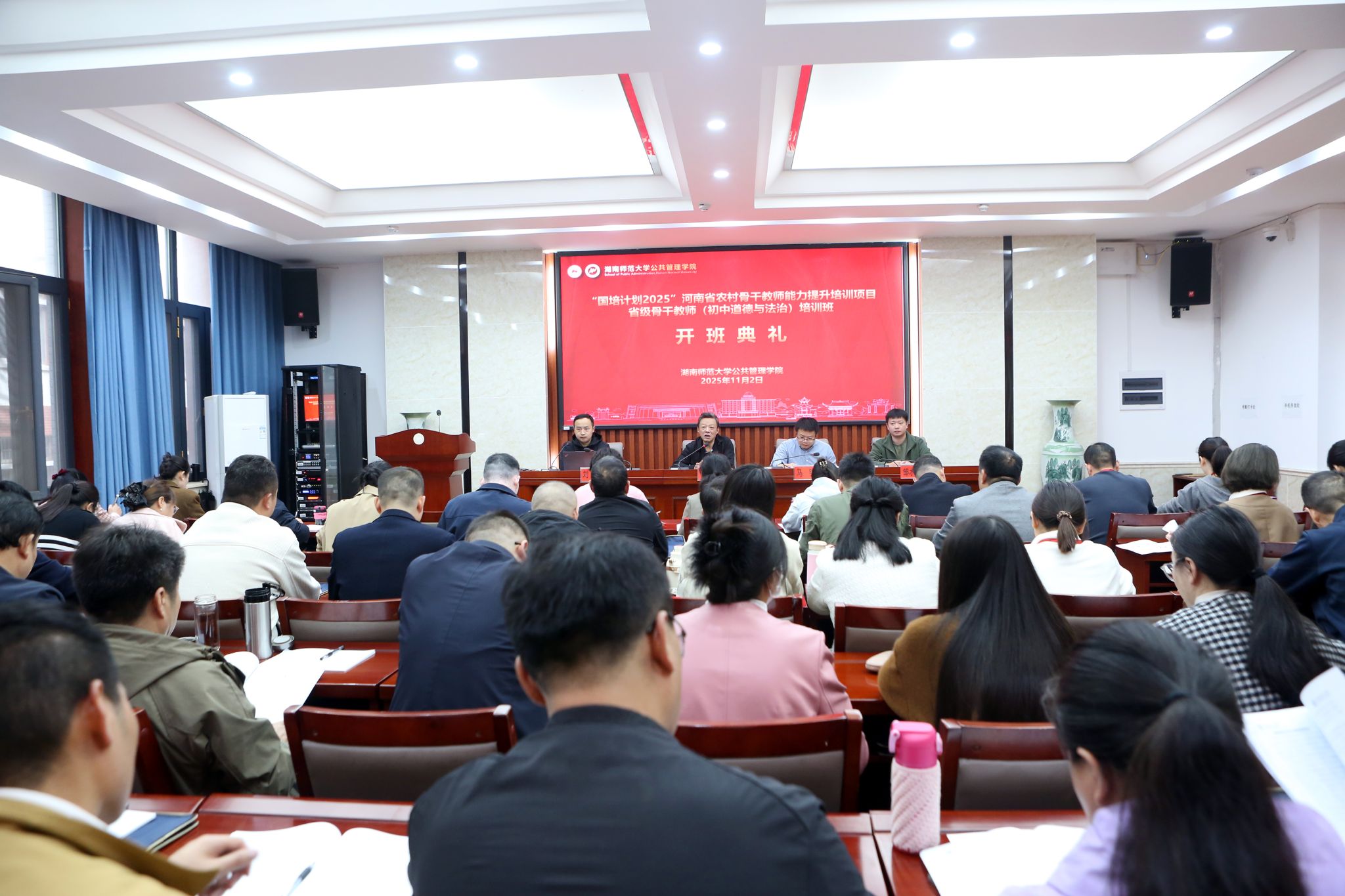 “国培计划2025”-河南省农村骨干教师能力提升项目省级骨干教师(初中道德与法治)培训班全体学员参加了开班典礼。