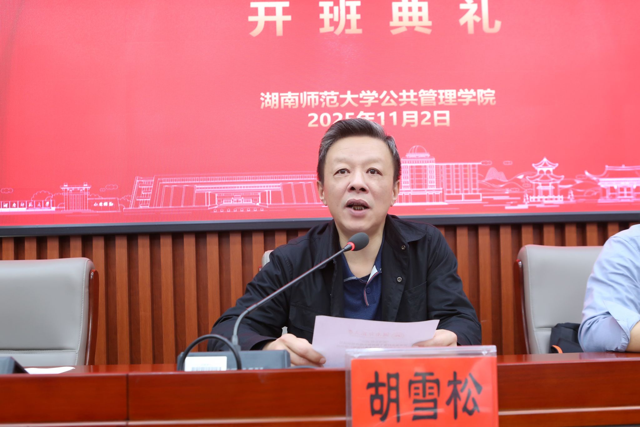 2025年11月2日上午8时,“国培计划2025”-河南省农村骨干教师能力提升项目省级骨干教师(初中道德与法治)培训班开班典礼在公司博后楼三楼报告厅隆重举行。湖南省初中道德与法治名师培养对象、雅礼中学思政教师、雅礼丁江公司董事长马明,公司副经理胡雪松、培训中心主任邹水平参加了典礼,典礼由培训中心副主任刘操主持。